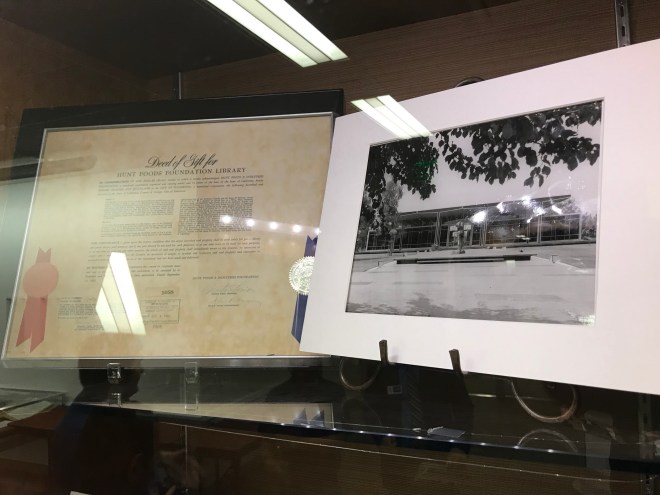 Famed photographer of modernist buildings Julius Shulman photographed the award-winning integrated campus of Hunt Industries, which included the Hunt Library building. These wonderful images can be found in the collection of the Getty, available for viewing at this link: